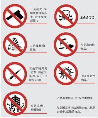 根據(jù)中國民航局的有關(guān)規(guī)定,乘坐班機(jī)禁止隨身攜帶且不可托運(yùn)的有以下物品: