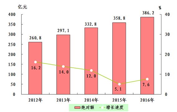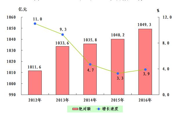 圖1:2012—2016年全市生產(chǎn)總值及增長(zhǎng)速度