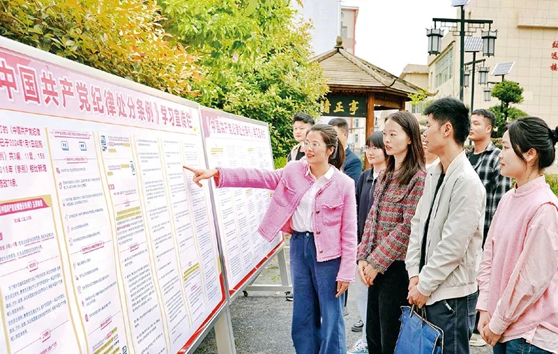在全黨開展黨紀(jì)學(xué)習(xí)教育,是加強(qiáng)黨的紀(jì)律建設(shè)、推動(dòng)全面從嚴(yán)治黨向縱深發(fā)展的重要舉措。連日來(lái),各地區(qū)各部門各單位精心謀劃部署、抓住學(xué)習(xí)重點(diǎn),推動(dòng)黨紀(jì)學(xué)習(xí)教育走深走實(shí)。圖為2024年4月10日,江西省蘆溪縣紀(jì)委監(jiān)委干部在《中國(guó)共產(chǎn)黨紀(jì)律處分條例》學(xué)習(xí)宣傳欄前交流。 鄧建萍/攝