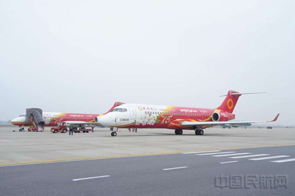 國產C909濕租給越捷航空后,投入越南國內航線運行(中國商飛及成都航空供圖)