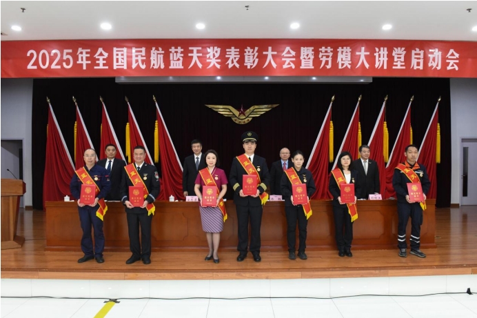 經(jīng)黨和國家功勛榮譽(yù)表彰工作委員會辦公室同意,2025年“五一”前夕,民航局開展藍(lán)天獎狀、藍(lán)天獎?wù)略u選表彰。會議宣讀了民航局表彰決定并進(jìn)行頒獎,授予國航西南分公司等27個單位、國航飛行總隊(duì)第四飛行大隊(duì)一中隊(duì)晨風(fēng)班組等48個班組藍(lán)天獎狀榮譽(yù)稱號,張鳳麟等75名同志藍(lán)天獎?wù)聵s譽(yù)稱號。藍(lán)天獎?wù)芦@得者、國航飛行總隊(duì)三大隊(duì)一中隊(duì)中隊(duì)長王雨寒宣讀了倡議書。