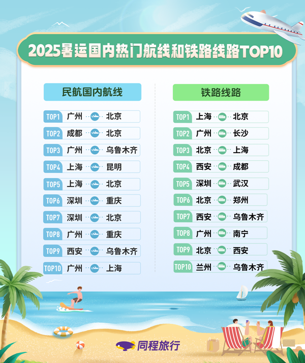 《中國(guó)民航報(bào)》、中國(guó)民航網(wǎng) 記者許曉泓 報(bào)道:6月17日,2025暑運(yùn)首日(7月1日)的火車票正式開(kāi)售,相關(guān)線路的機(jī)票預(yù)訂熱度也隨之快速攀升。6月18日,同程旅行發(fā)布的《2025暑運(yùn)出行趨勢(shì)報(bào)告》(下稱《報(bào)告》)顯示,從6月17日開(kāi)始,暑運(yùn)機(jī)票及火車票迎來(lái)預(yù)訂高峰。