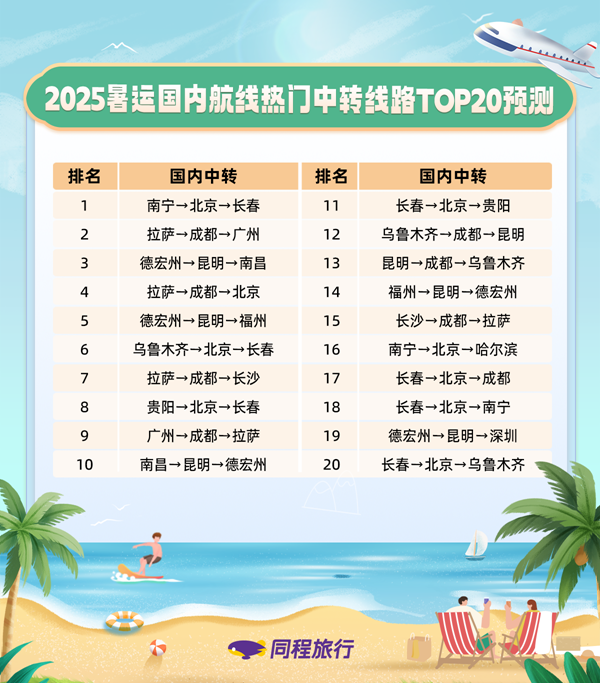 暑運(yùn)中轉(zhuǎn)聯(lián)程出行方案需求上升,北京、成都、昆明等中轉(zhuǎn)樞紐熱度居前